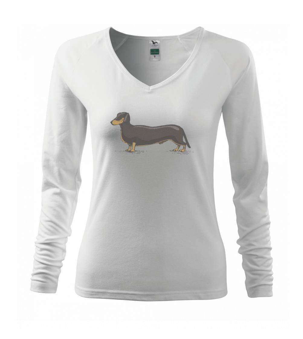 Dachshund neboli jezevčík. Tohle plemeno je oblíbené hlavně u starších lidí. Tričko nebo mikina jako dáreček by určitě udělaly radost babičce i dědečkovi.