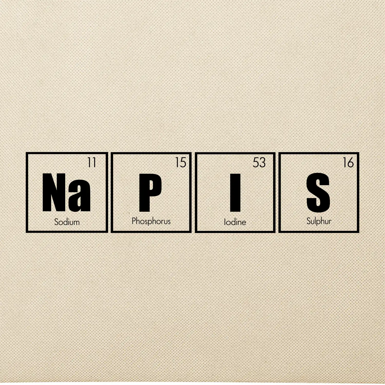 Nápis bude vytvořen existujícími prvky z tabulky periodickým prvků, vč celého názvu prvku, protonového čísla a Atomové relativní hmotnosti.