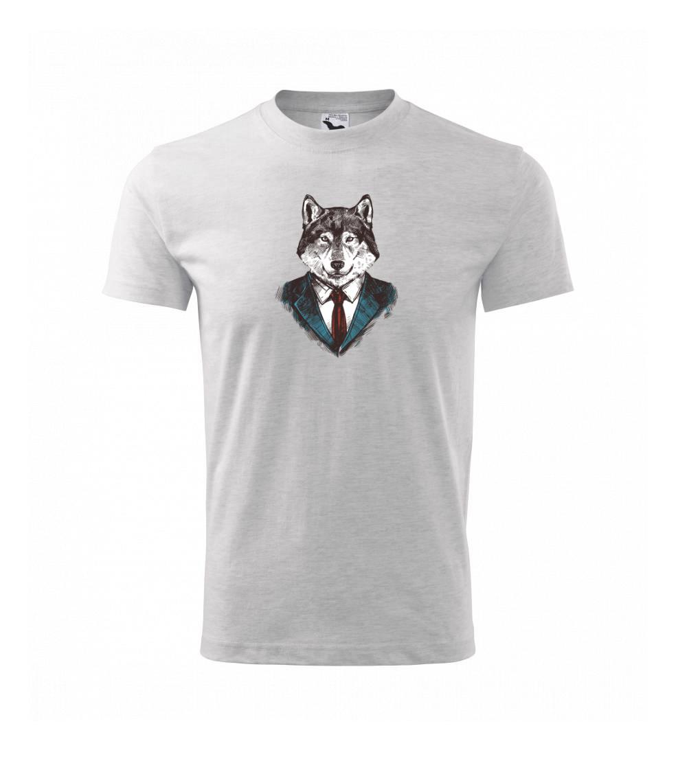 Triko pro gentlemana, na kterém je vlk v obleku. Nahoď oblek i když jsi vlk samotář. Pokud zvíře v tobě nezkrotí ani oblek, pak je tohle triko, na kterém je vlčí hlava, právě pro tebe!
