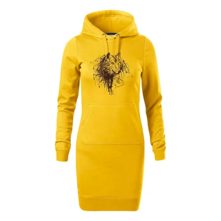 Dámské mikinové šaty MALFINI Snap 419 jsou ideální volbou pro ženy, které hledají pohodlný a stylový kousek pro volný čas nebo každodenní nošení. Lehce vypasovaný střih s bočními švy podtrhuje ženskou siluetu, zatímco kapuce s podšívkou a stahovací šňůrkou dodává ležérní vzhled. Šaty mají délku nad kolena a jsou vybaveny nakládanou kapsou ve stylu „klokanky“. Materiál je měkký a příjemný na dotek díky směsi bavlny a polyesteru s nepočesanou vnitřní stranou.
