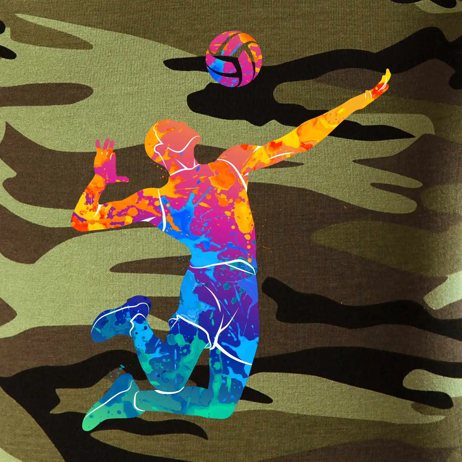 Tričko střední gramáže v barvách camouflage. Střih s bočními švy. Lem průkrčníku ze žebrového úpletu s přídavkem 5 % elastanu. Vnitřní část zadního průkrčníku začištěna páskou v barvě camouflage.