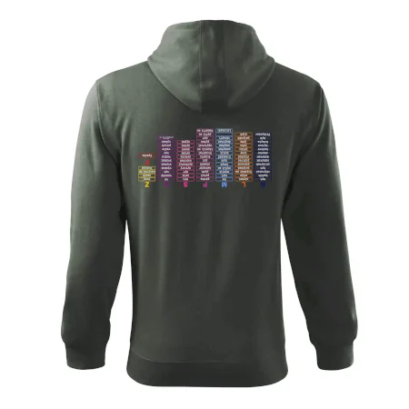 Pánská mikina MALFINI Trendy Zipper 410 je dokonalou kombinací moderního designu, funkčnosti a pohodlí, ideální pro každodenní nošení, práci nebo volný čas. Vyrobena z kvalitní směsi 65 % bavlny a 35 % polyesteru (u barvy 12: 85 % bavlna, 15 % viskóza) s gramáží 300 g/m² a počesanou vnitřní stranou typu Terry, která zajišťuje mimořádnou měkkost a teplo. Mikina má rovný střih s bočními švy, celopropínací kostěný zip a kapuci s podšívkou, kterou lze regulovat pomocí stahovací šňůrky. Vnitřní část průkrčníku je začištěna kontrastní páskou pro větší odolnost a estetiku. Praktické nakládané kapsy ve stylu „klokanky“ s ozdobným prošíváním a elastické lemy s 2:2 žebrovým úpletem obsahujícím 5 % elastanu zaručují perfektní přizpůsobení a pohodlí při pohybu. Vhodná pro potisk nebo výšivku, dostupná v široké škále barev a velikostí S-3XL.
