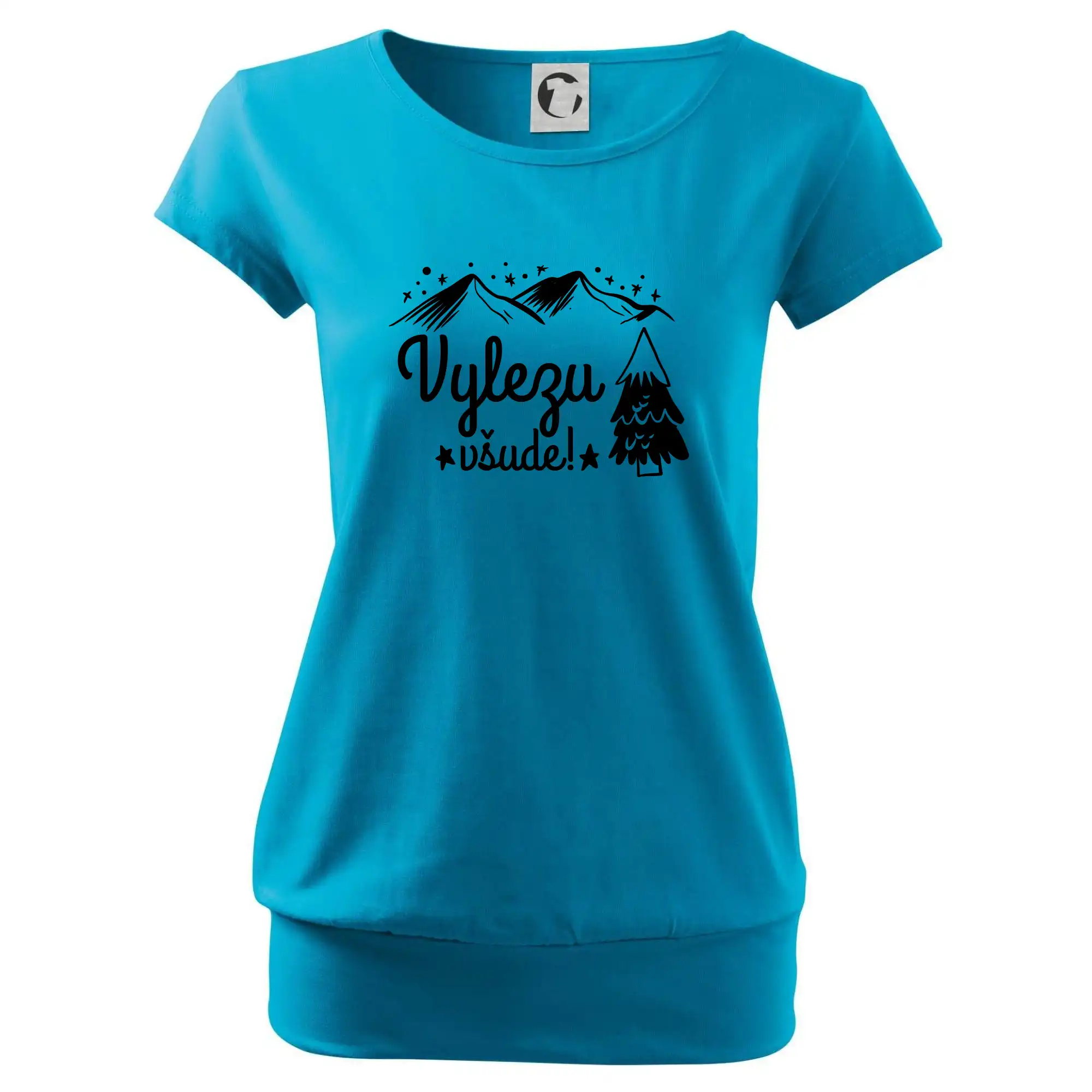 Trendové dámské triko s velmi krátkým rukávem, volnějšího střihu, v dolním kraji všité do širokého lemu. Kulatý průkrčník s úzkým lemem ze shodného materiálu.