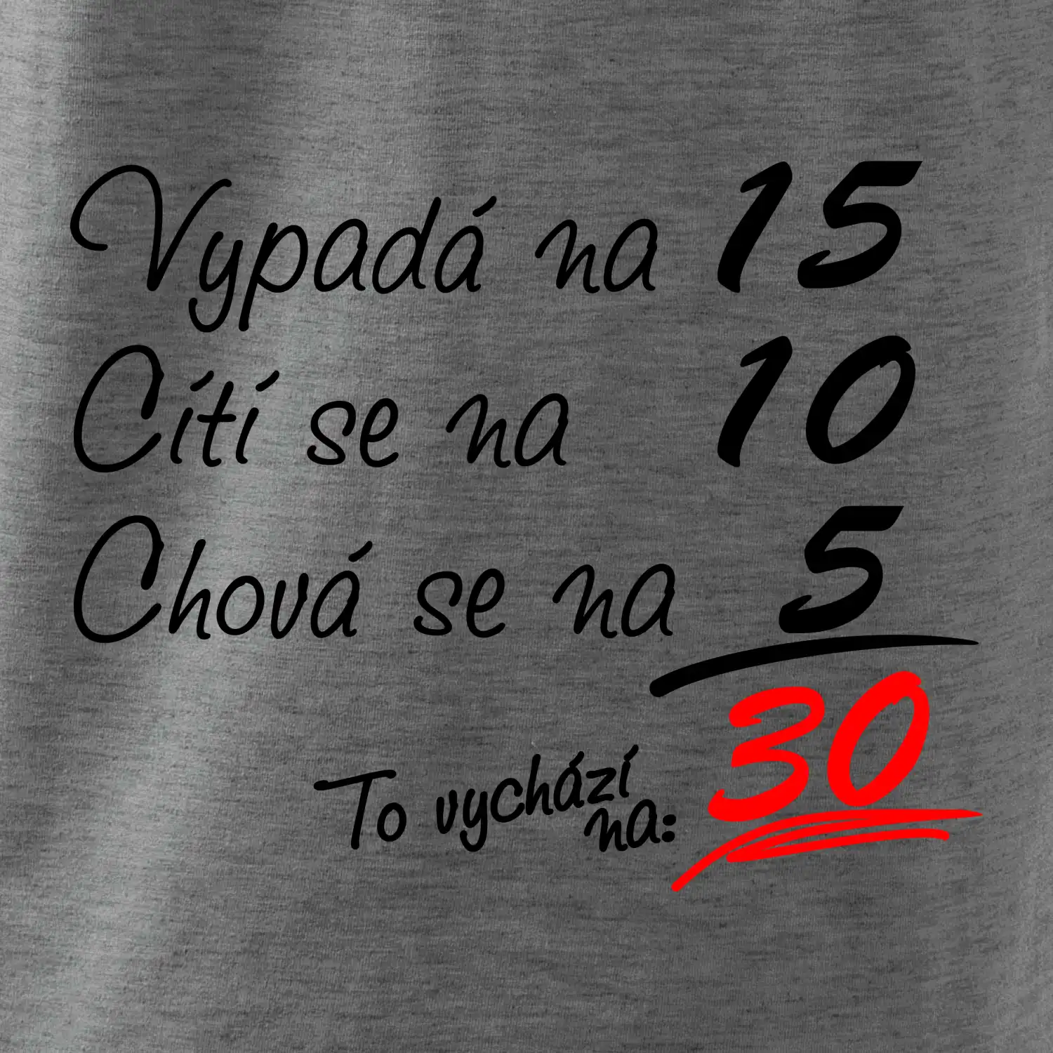Tričko k narozeninám pro všechny, kteří se cití na méně než jim ve skutečnosti je. Pro všechny co mají smysl pro humor a mají rádi vtipné dárky.