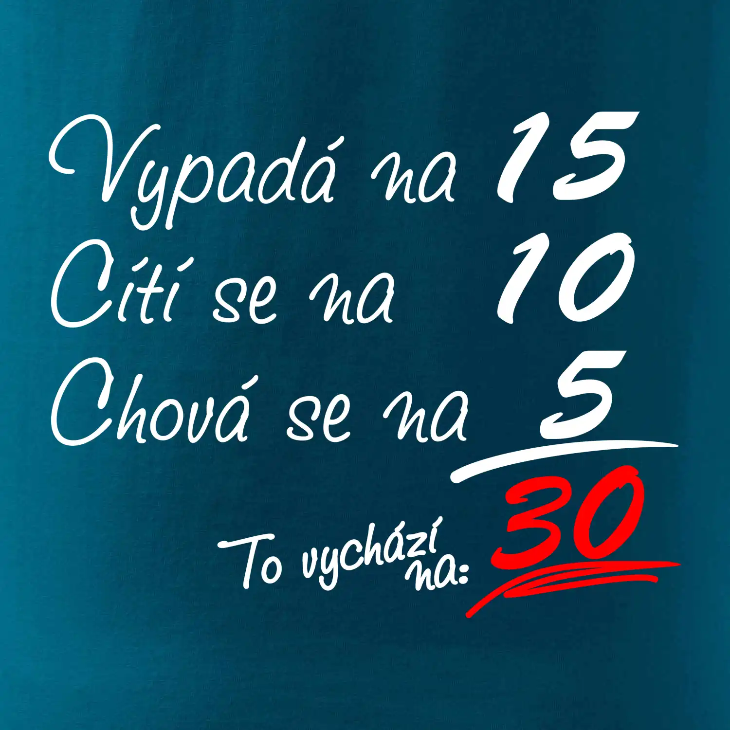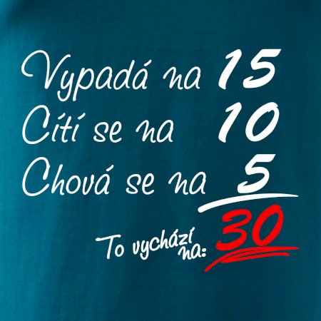 Tričko k narozeninám pro všechny, kteří se cití na méně než jim ve skutečnosti je. Pro všechny co mají smysl pro humor a mají rádi vtipné dárky.