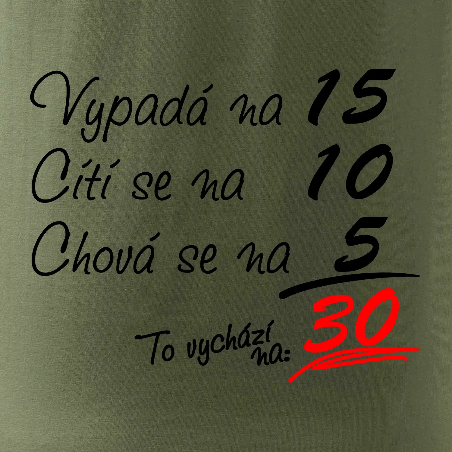 Tričko k narozeninám pro všechny, kteří se cití na méně než jim ve skutečnosti je. Pro všechny co mají smysl pro humor a mají rádi vtipné dárky.