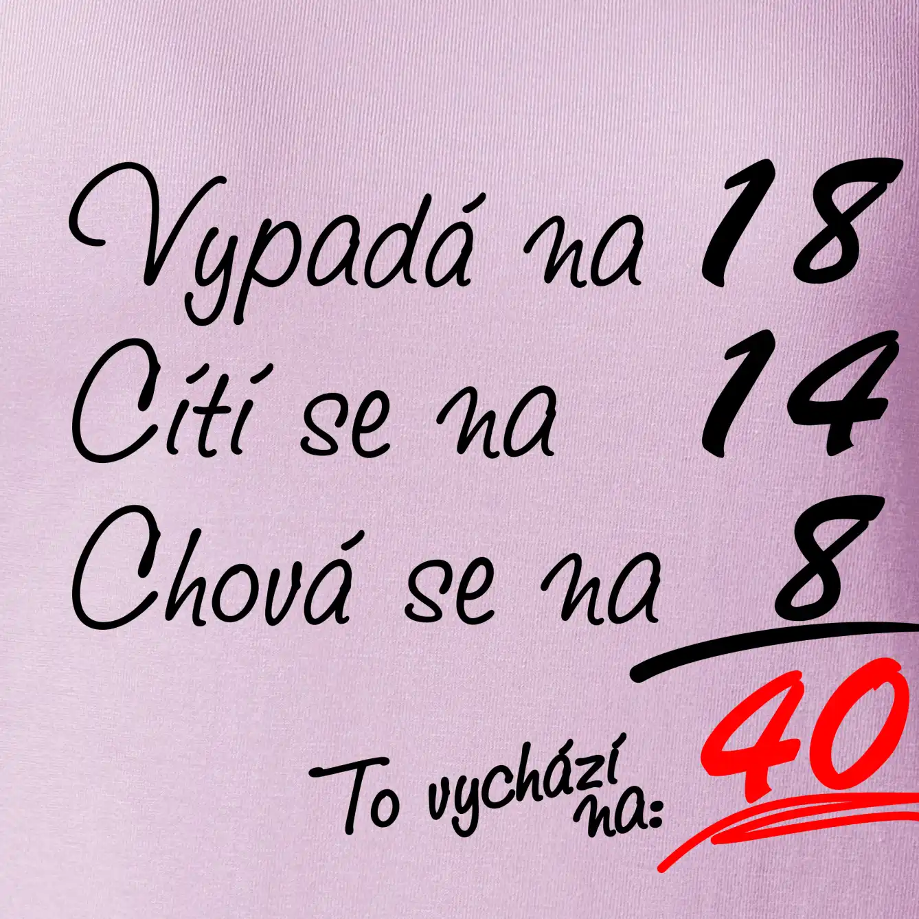 Tričko k narozeninám pro všechny, kteří se cití na méně než jim ve skutečnosti je. Pro všechny co mají smysl pro humor a mají rádi vtipné dárky.