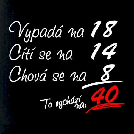 Tričko k narozeninám pro všechny, kteří se cití na méně než jim ve skutečnosti je. Pro všechny co mají smysl pro humor a mají rádi vtipné dárky.