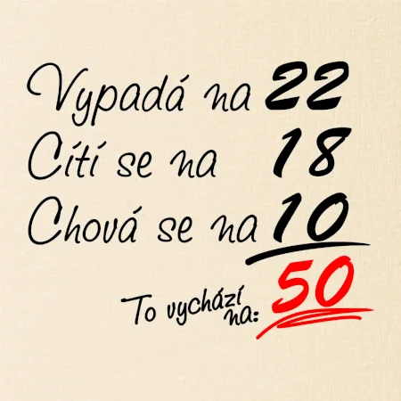 Tričko k narozeninám pro všechny, kteří se cití na méně než jim ve skutečnosti je. Pro všechny co mají smysl pro humor a mají rádi vtipné dárky.