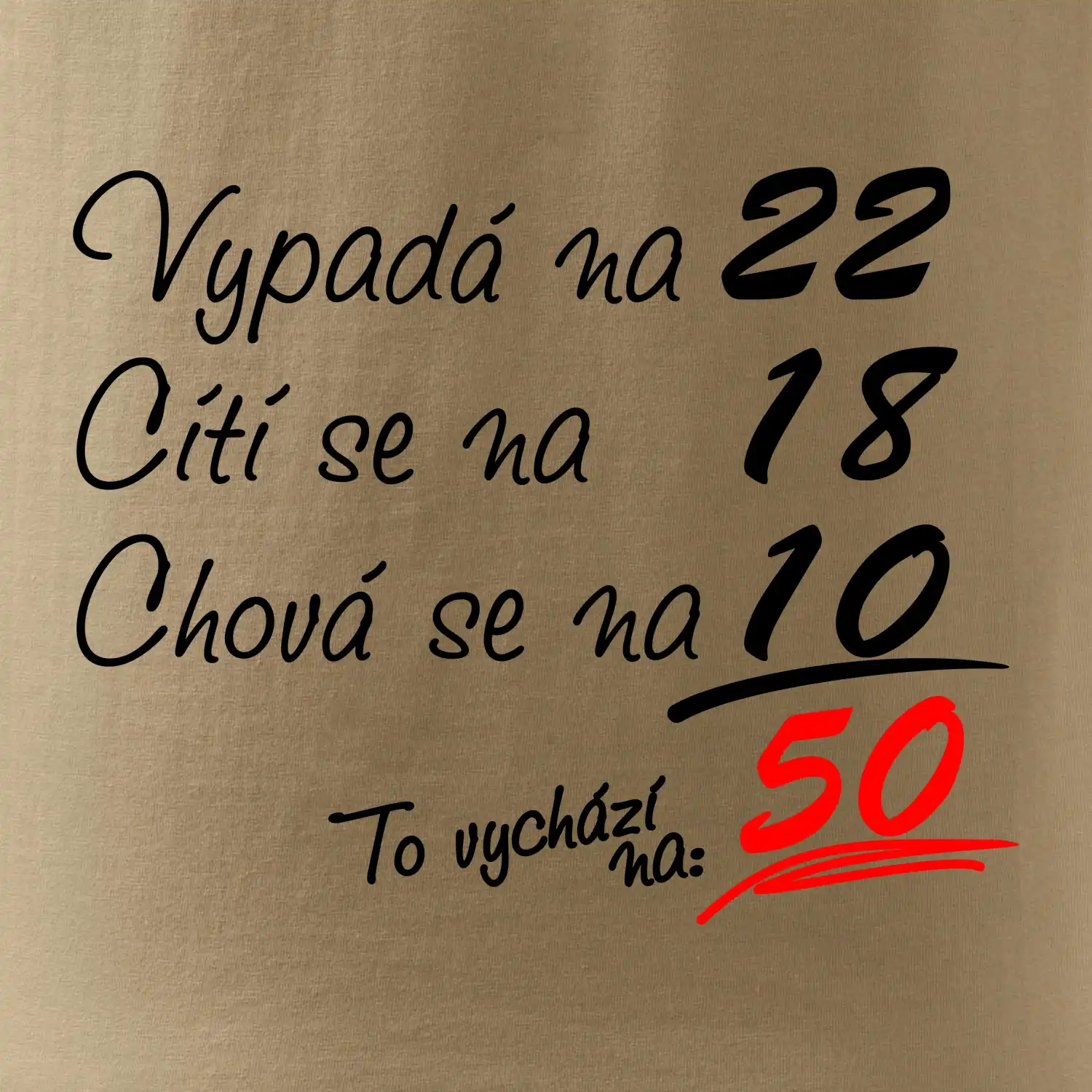 Tričko k narozeninám pro všechny, kteří se cití na méně než jim ve skutečnosti je. Pro všechny co mají smysl pro humor a mají rádi vtipné dárky.