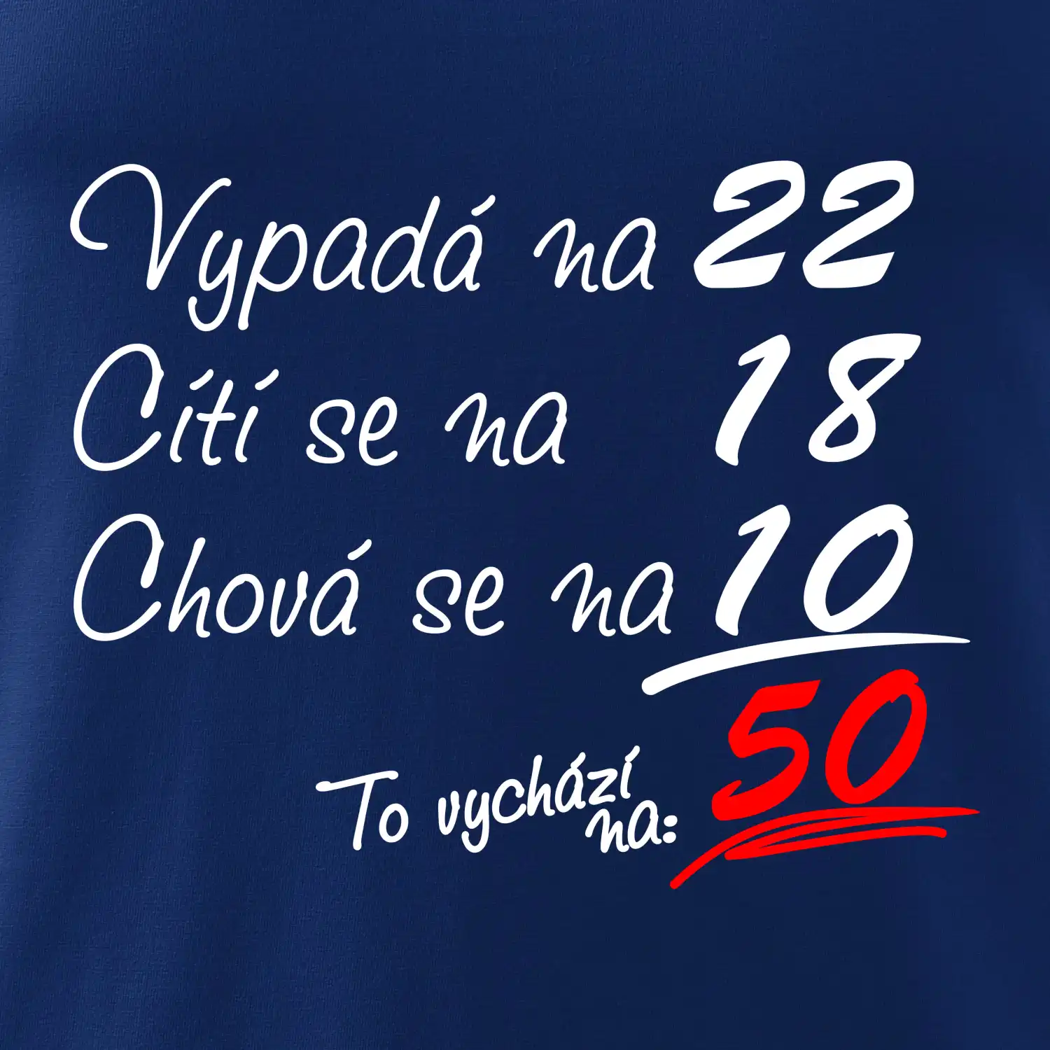 Tričko k narozeninám pro všechny, kteří se cití na méně než jim ve skutečnosti je. Pro všechny co mají smysl pro humor a mají rádi vtipné dárky.
