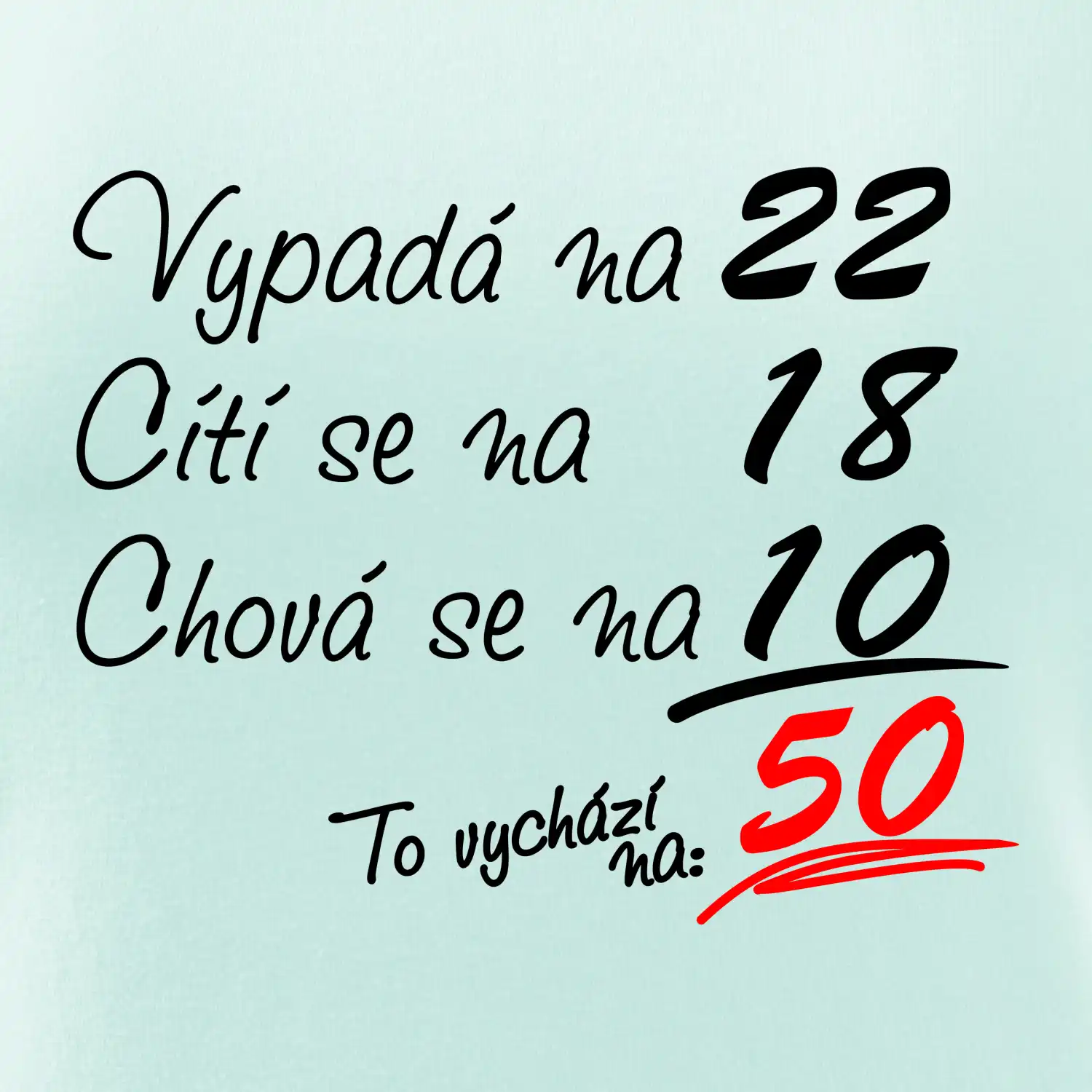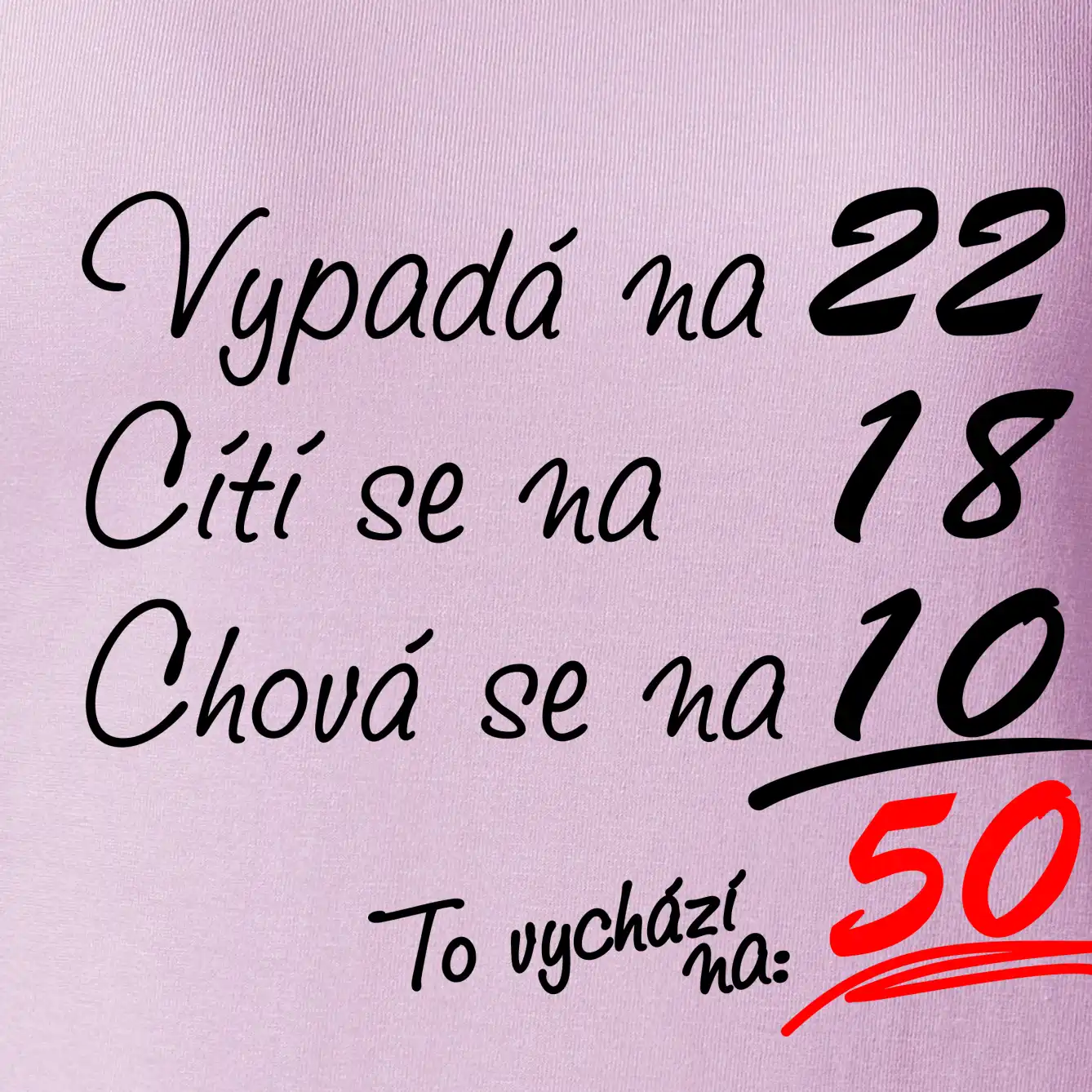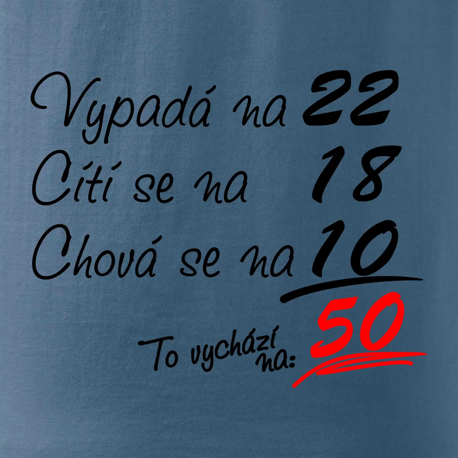 Tričko k narozeninám pro všechny, kteří se cití na méně než jim ve skutečnosti je. Pro všechny co mají smysl pro humor a mají rádi vtipné dárky.