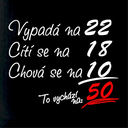 Tričko k narozeninám pro všechny, kteří se cití na méně než jim ve skutečnosti je. Pro všechny co mají smysl pro humor a mají rádi vtipné dárky.