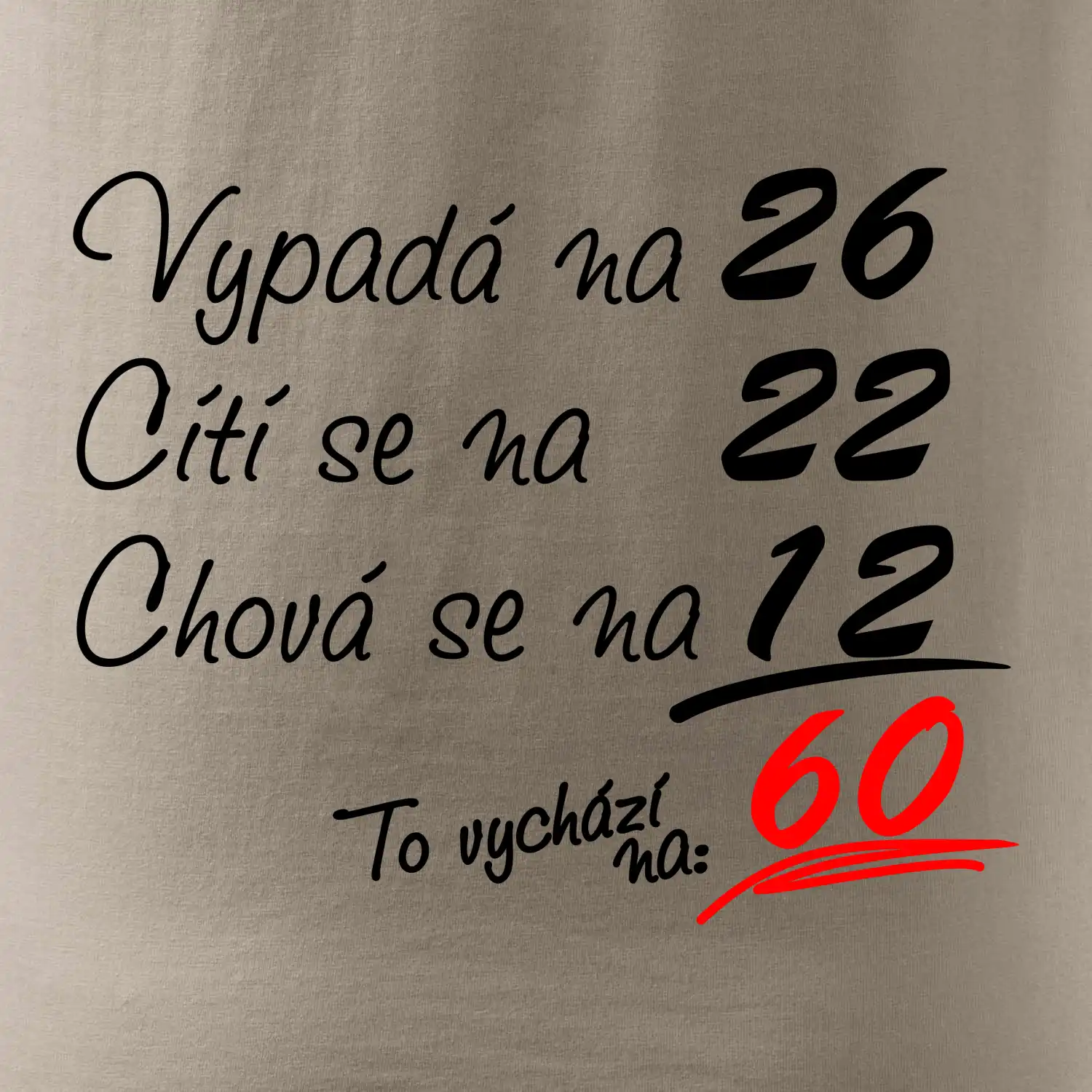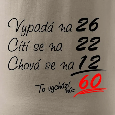 Tričko k narozeninám pro všechny, kteří se cití na méně než jim ve skutečnosti je. Pro všechny co mají smysl pro humor a mají rádi vtipné dárky.