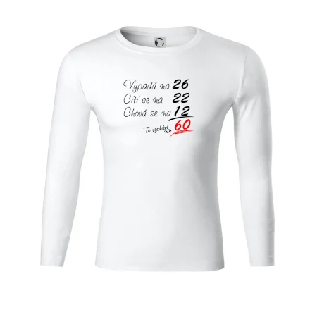 Tričko k narozeninám pro všechny, kteří se cití na méně než jim ve skutečnosti je. Pro všechny co mají smysl pro humor a mají rádi vtipné dárky.