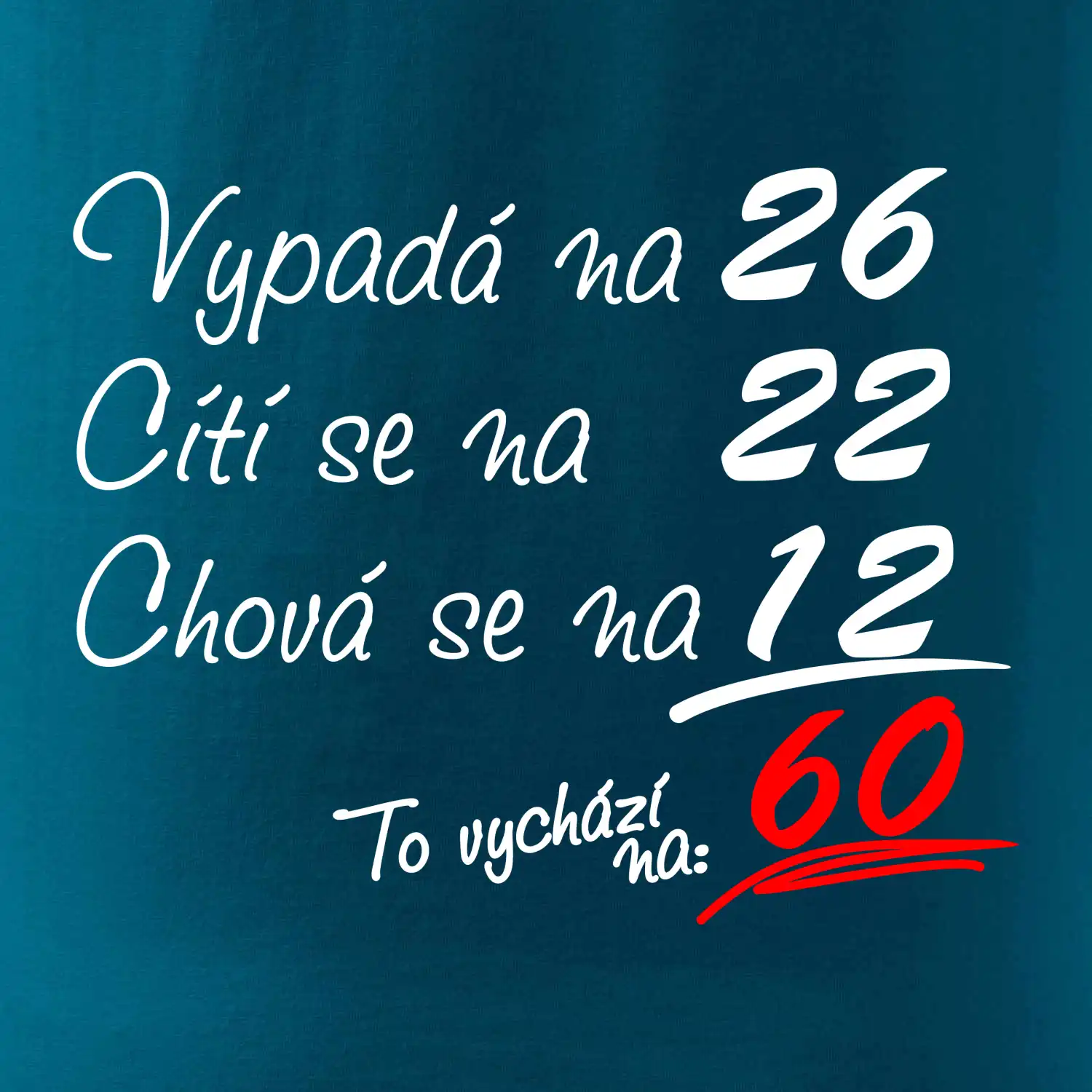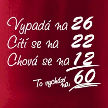 Tričko k narozeninám pro všechny, kteří se cití na méně než jim ve skutečnosti je. Pro všechny co mají smysl pro humor a mají rádi vtipné dárky.