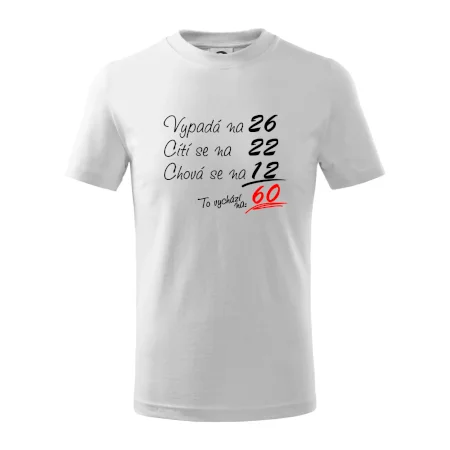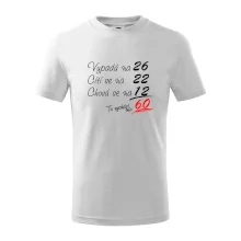 Tričko k narozeninám pro všechny, kteří se cití na méně než jim ve skutečnosti je. Pro všechny co mají smysl pro humor a mají rádi vtipné dárky.
