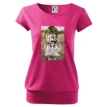 Trendové dámské triko s velmi krátkým rukávem, volnějšího střihu, v dolním kraji všité do širokého lemu. Kulatý průkrčník s úzkým lemem ze shodného materiálu.