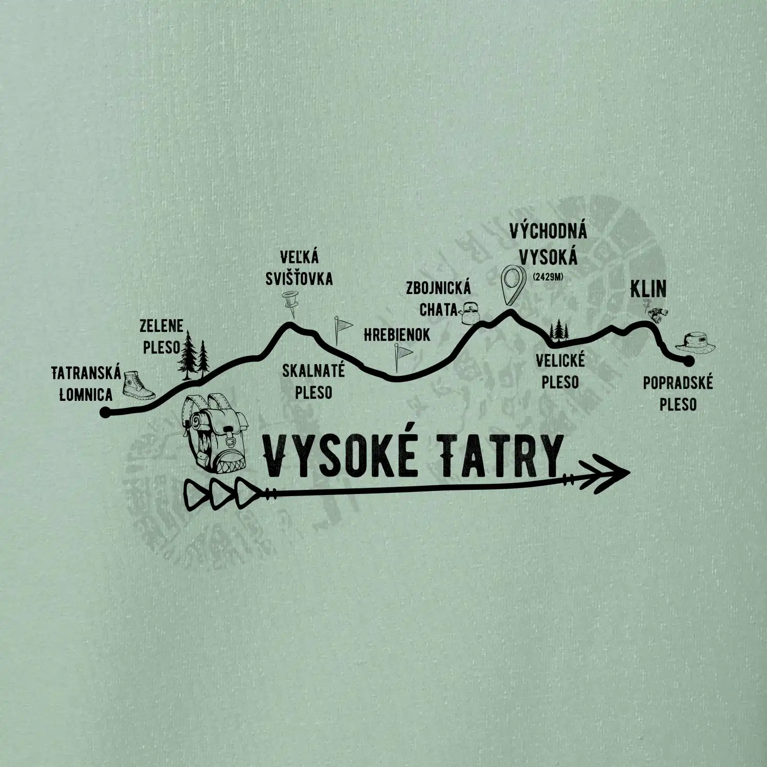 Profil cesty napříč Vysokými Tatrami.