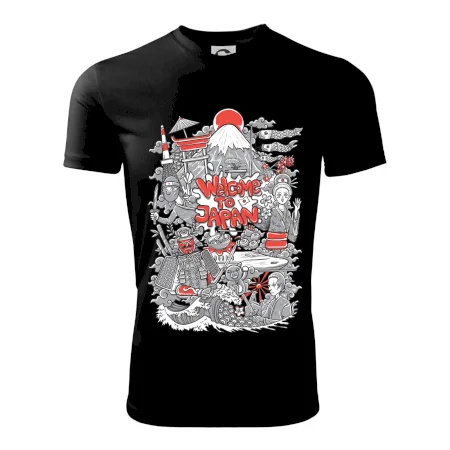 Cestovatelské triko pro cestovatele, který má rád Japonsko. Triko s motivem "Welcome to Japan" ti poznávání Japonska usnadní. Triko je vhodné pro cestovatele, kteří mají rádi poznávání nových zemí, zejména pak Japonsko.