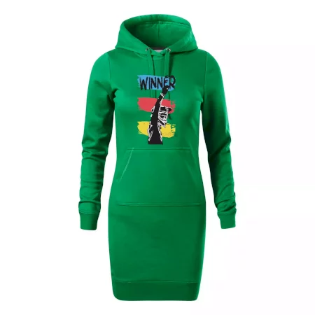 Dámské mikinové šaty MALFINI Snap 419 jsou ideální volbou pro ženy, které hledají pohodlný a stylový kousek pro volný čas nebo každodenní nošení. Lehce vypasovaný střih s bočními švy podtrhuje ženskou siluetu, zatímco kapuce s podšívkou a stahovací šňůrkou dodává ležérní vzhled. Šaty mají délku nad kolena a jsou vybaveny nakládanou kapsou ve stylu „klokanky“. Materiál je měkký a příjemný na dotek díky směsi bavlny a polyesteru s nepočesanou vnitřní stranou.