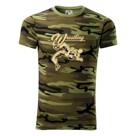 Tričko střední gramáže v barvách camouflage. Střih s bočními švy. Lem průkrčníku ze žebrového úpletu s přídavkem 5 % elastanu. Vnitřní část zadního průkrčníku začištěna páskou v barvě camouflage.