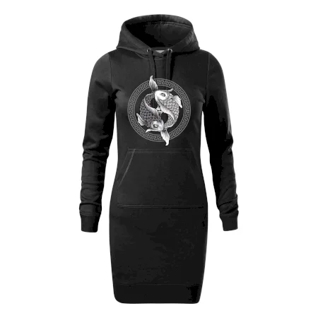 Dámské mikinové šaty MALFINI Snap 419 jsou ideální volbou pro ženy, které hledají pohodlný a stylový kousek pro volný čas nebo každodenní nošení. Lehce vypasovaný střih s bočními švy podtrhuje ženskou siluetu, zatímco kapuce s podšívkou a stahovací šňůrkou dodává ležérní vzhled.