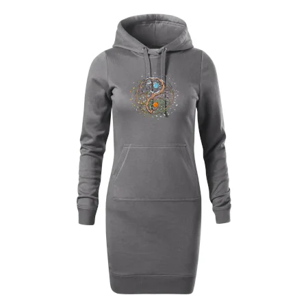 Dámské mikinové šaty MALFINI Snap 419 jsou ideální volbou pro ženy, které hledají pohodlný a stylový kousek pro volný čas nebo každodenní nošení. Lehce vypasovaný střih s bočními švy podtrhuje ženskou siluetu, zatímco kapuce s podšívkou a stahovací šňůrkou dodává ležérní vzhled.
