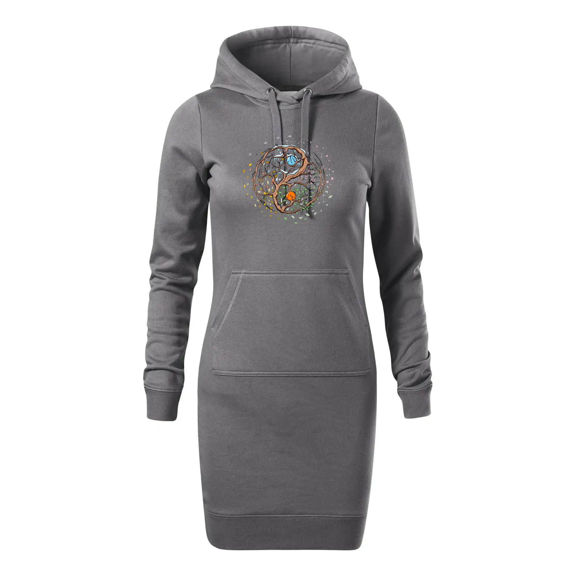 Dámské mikinové šaty MALFINI Snap 419 jsou ideální volbou pro ženy, které hledají pohodlný a stylový kousek pro volný čas nebo každodenní nošení. Lehce vypasovaný střih s bočními švy podtrhuje ženskou siluetu, zatímco kapuce s podšívkou a stahovací šňůrkou dodává ležérní vzhled. Šaty mají délku nad kolena a jsou vybaveny nakládanou kapsou ve stylu „klokanky“. Materiál je měkký a příjemný na dotek díky směsi bavlny a polyesteru s nepočesanou vnitřní stranou.
