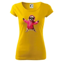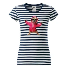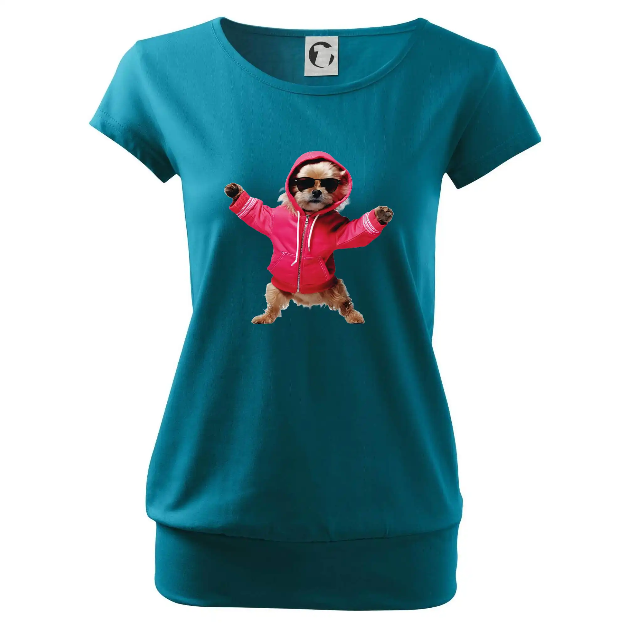 Trendové dámské triko s velmi krátkým rukávem, volnějšího střihu, v dolním kraji všité do širokého lemu. Kulatý průkrčník s úzkým lemem ze shodného materiálu.