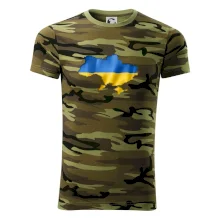 Tričko střední gramáže v barvách camouflage. Střih s bočními švy. Lem průkrčníku ze žebrového úpletu s přídavkem 5 % elastanu. Vnitřní část zadního průkrčníku začištěna páskou v barvě camouflage.