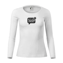 Tolerantnější vypasování dámského střihu, který je vhodný pro všechny typy postavy, ideální délka rukávů a konzervativní výstřih zakončený žebrováním, které skvěle drží tvar.
