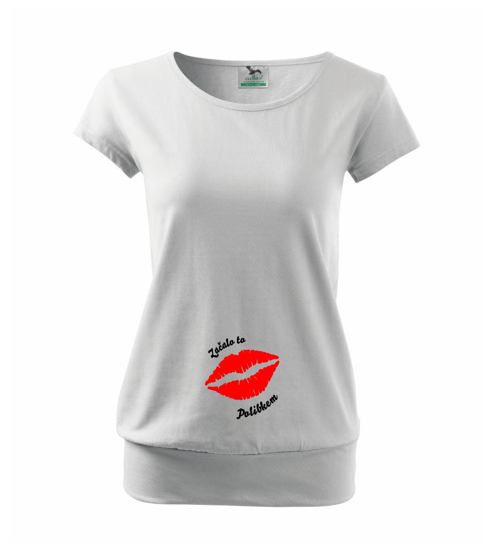 Trička pro všechny těhotné. Pořiď své kamarádce v jináči vtipný dárek! Vtipné triko s nápisem "Začalo to polibkem" a pusou jako dárek pro maminku v očekávání.