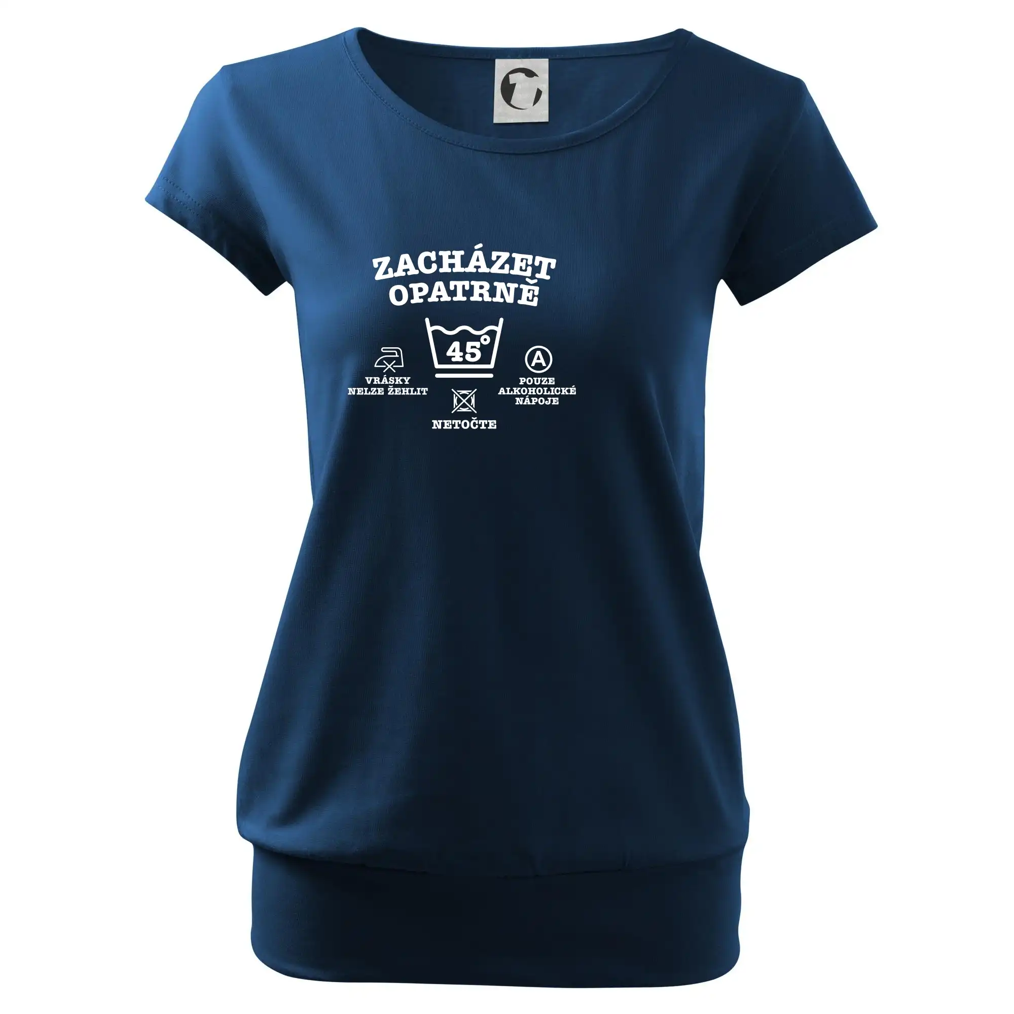 Triko sahá do hloubky boků. Silikonová úprava zajišťuje měkký a splývavý omak.