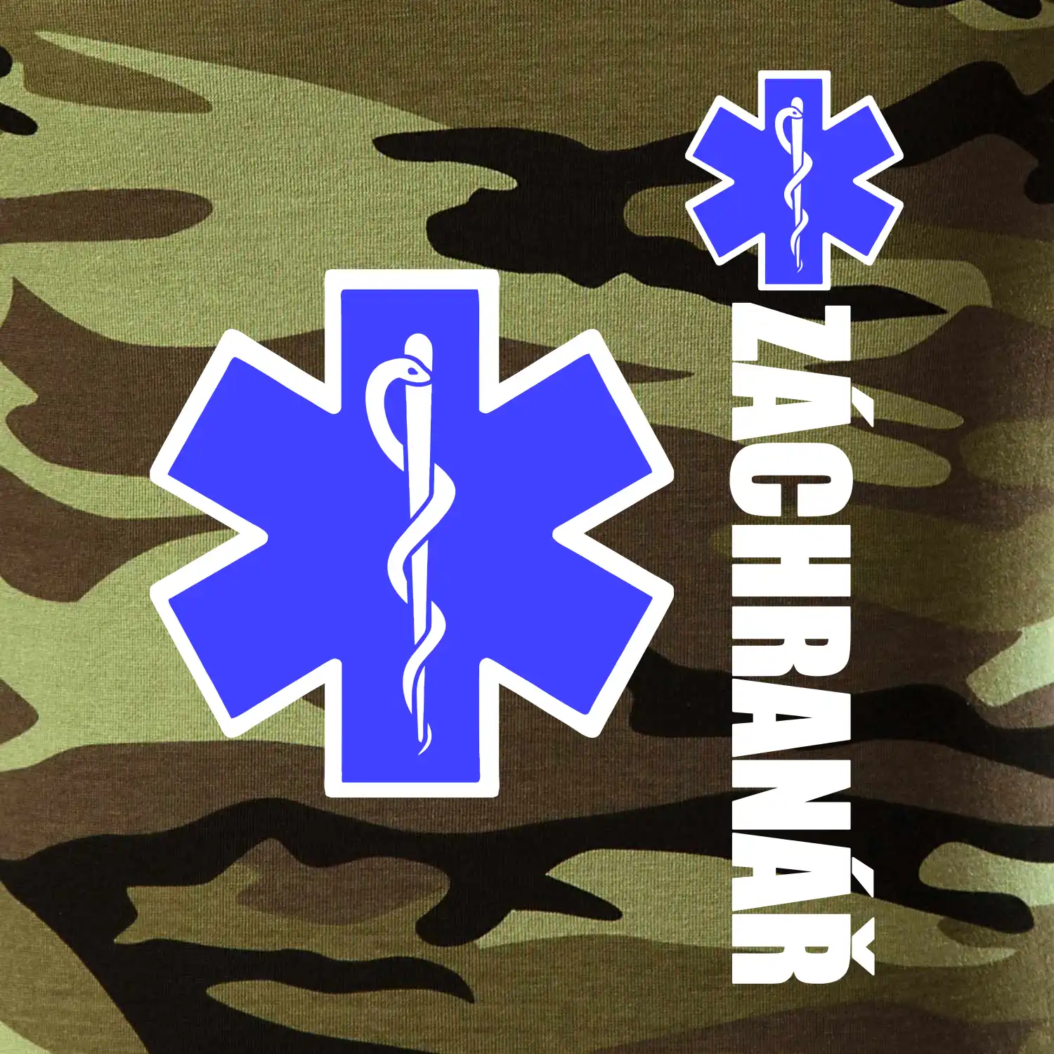 Skvělé triko pro všechny záchranáře a členy rescue složek. Záchranářské triko na kterém je nápis Záchranář a modrá hvězda života. Triko je vhodný dárek pro záchranáře.