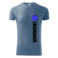 Skvělé triko pro všechny záchranáře a členy rescue složek. Záchranářské triko na kterém je nápis Záchranář a modrá hvězda života. Triko je vhodný dárek pro záchranáře.