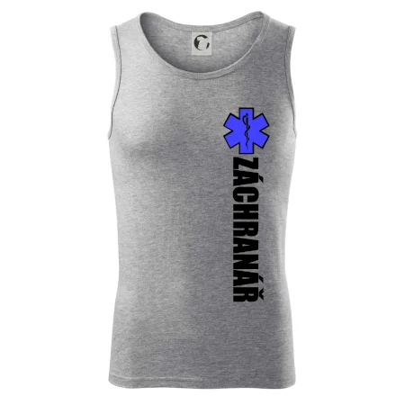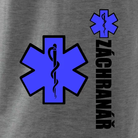 Skvělé triko pro všechny záchranáře a členy rescue složek. Záchranářské triko na kterém je nápis Záchranář a modrá hvězda života. Triko je vhodný dárek pro záchranáře.
