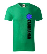 Skvělé triko pro všechny záchranáře a členy rescue složek. Záchranářské triko na kterém je nápis Záchranář a modrá hvězda života. Triko je vhodný dárek pro záchranáře.