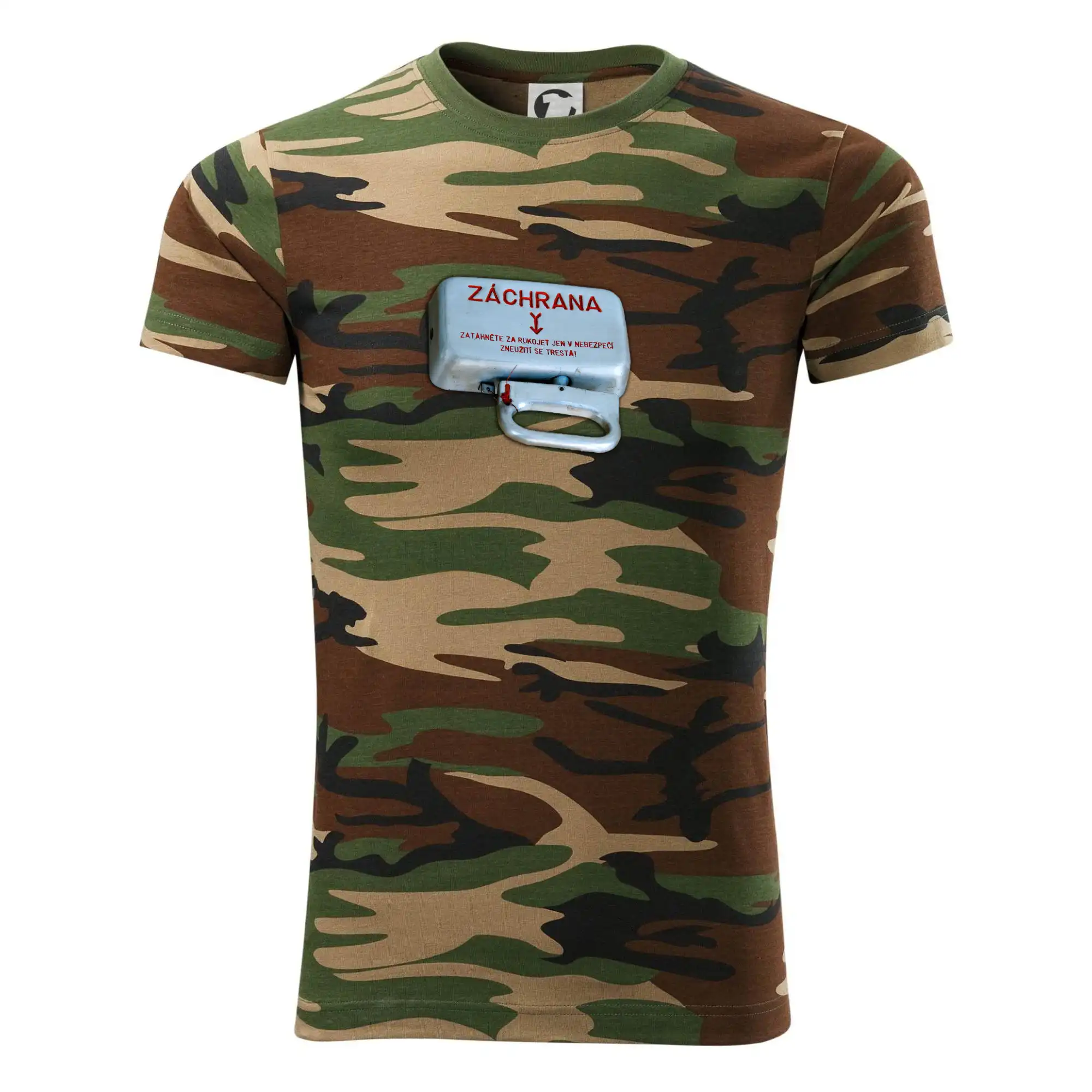 Tričko střední gramáže v barvách camouflage. Střih s bočními švy. Lem průkrčníku ze žebrového úpletu s přídavkem 5 % elastanu. Vnitřní část zadního průkrčníku začištěna páskou v barvě camouflage.
