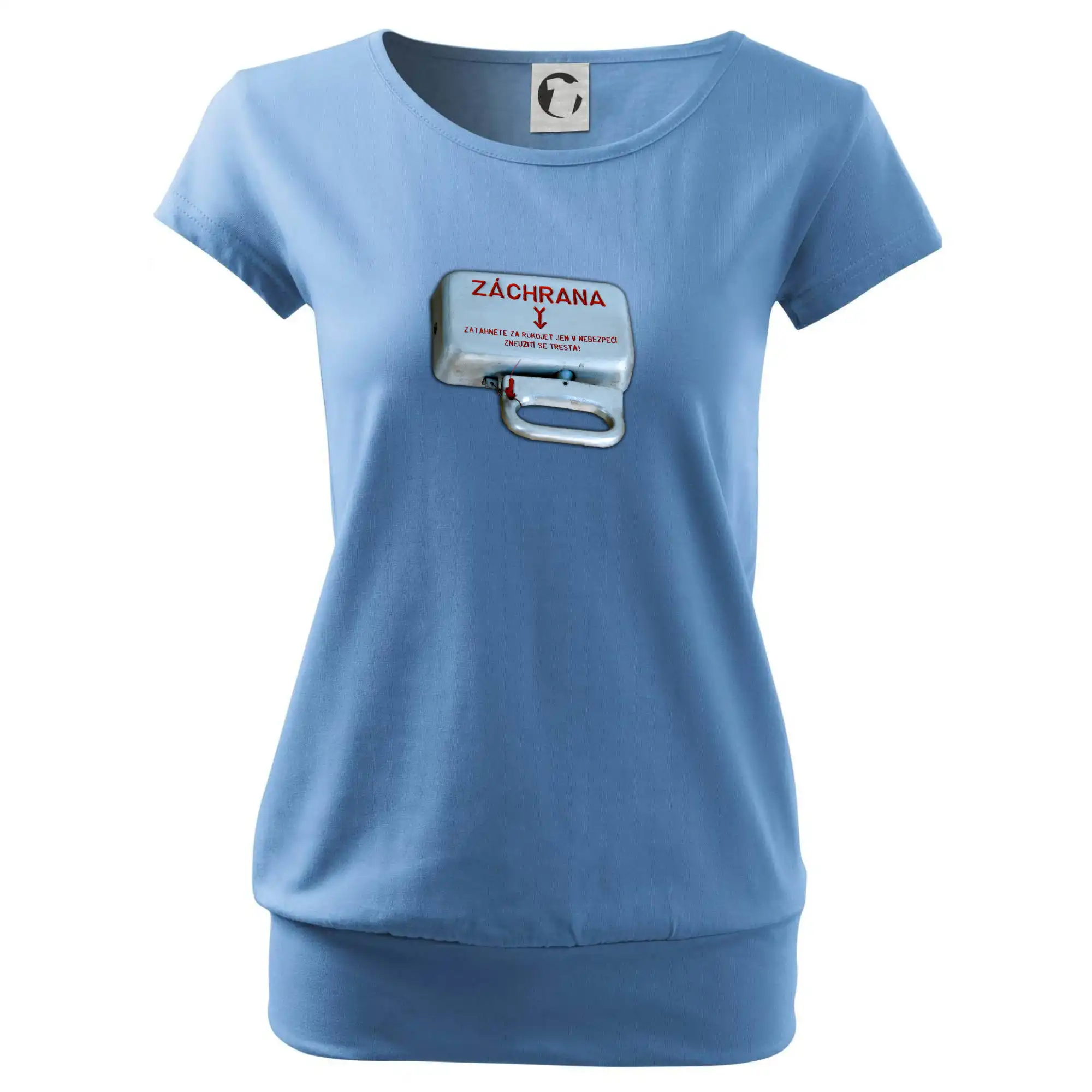 Trendové dámské triko s velmi krátkým rukávem, volnějšího střihu, v dolním kraji všité do širokého lemu. Kulatý průkrčník s úzkým lemem ze shodného materiálu.