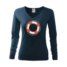 Tolerantnější vypasování dámského střihu, který je vhodný pro všechny typy postavy, ideální délka rukávů a konzervativní výstřih zakončený žebrováním, které skvěle drží tvar.