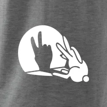 Stínový zajíc na triku s motivem míru, který zná snad každý na světě.