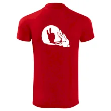 Stínový zajíc na triku s motivem míru, který zná snad každý na světě.