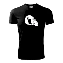 Stínový zajíc na triku s motivem míru, který zná snad každý na světě.