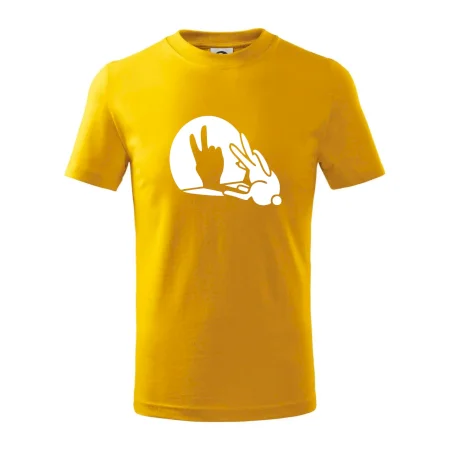Stínový zajíc na triku s motivem míru, který zná snad každý na světě.
