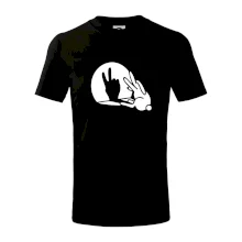 Stínový zajíc na triku s motivem míru, který zná snad každý na světě.