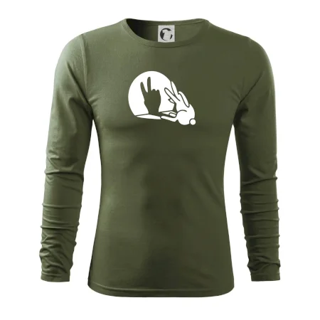 Stínový zajíc na triku s motivem míru, který zná snad každý na světě.
