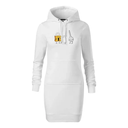 Dámské mikinové šaty MALFINI Snap 419 jsou ideální volbou pro ženy, které hledají pohodlný a stylový kousek pro volný čas nebo každodenní nošení. Lehce vypasovaný střih s bočními švy podtrhuje ženskou siluetu, zatímco kapuce s podšívkou a stahovací šňůrkou dodává ležérní vzhled. Šaty mají délku nad kolena a jsou vybaveny nakládanou kapsou ve stylu „klokanky“. Materiál je měkký a příjemný na dotek díky směsi bavlny a polyesteru s nepočesanou vnitřní stranou.