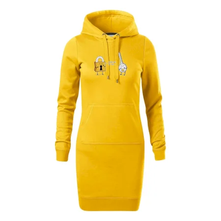 Dámské mikinové šaty MALFINI Snap 419 jsou ideální volbou pro ženy, které hledají pohodlný a stylový kousek pro volný čas nebo každodenní nošení. Lehce vypasovaný střih s bočními švy podtrhuje ženskou siluetu, zatímco kapuce s podšívkou a stahovací šňůrkou dodává ležérní vzhled.