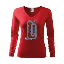 Tolerantnější vypasování dámského střihu, který je vhodný pro všechny typy postavy, ideální délka rukávů a konzervativní výstřih zakončený žebrováním, které skvěle drží tvar.